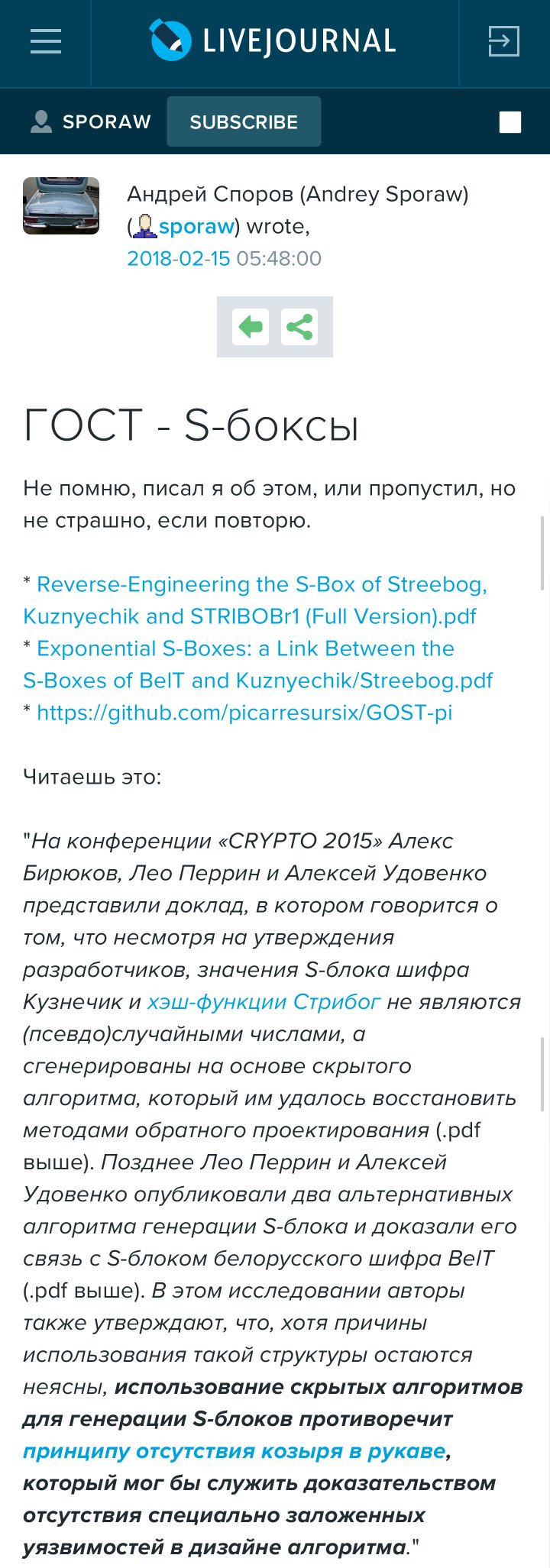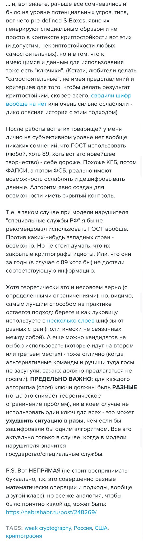 = Сообщение: 2496 из 2655 ================================== RU.BLOG.MITHGOL = От : @FidonetRunes 2:50/88 15 Feb 18 17:27:24 Кому : All 15 Feb 18 17:27:24 Тема : Twitter: @FidonetRunes FGHI : area://RU.BLOG.MITHGOL?msgid=2:50/88+5a8598cc = Кодировка сообщения определена как: CP866 ================================== ============================================================================== Only in America (@Crazzyintheusa) 2018-02-14 13:52:27 (UTC)https://twitter.com/Crazzyintheusa/status/963772929728229376 Valentine&+IBk-;s Day in Texas. [ ](https://pbs.twimg.com/media/DWACXxCX4AEUGKO.jpg:orig "zoom") breakingmad (@breakingmad_) 2018-02-14 14:00:29 (UTC)https://twitter.com/breakingmad_/status/963774953811271681 В мэрию Еревана вызвали психиатра из-за разлитых депутатом фекалий, предназначенных для мэраhttp://breakingmad.me/ru/10523 Lea Verou (@LeaVerou) 2018-02-14 14:16:29 (UTC)https://twitter.com/LeaVerou/status/963778980175376384 Dear fellow scientists and engineers: If when giving feedback you forget to say anything positive and jump straight to criticism, the other person doesn&+IBk-;t assume the positive is &+IBw-;obvious&+IB0-;. They are not in your head. They assume they fucked up so there&+IBk-;s nothing positive to say. ForkLog (@ForkLog) 2018-02-14 14:24:31 (UTC)https://twitter.com/ForkLog/status/963780999376265217 Western Union приступила к тестированию платежей на базе технологии Ripplehttps://goo.gl/DExXuP #Ripple #WesternUnion [ ](https://pbs.twimg.com/media/DWAJtdkX0AA1xle.jpg:orig "zoom") Mithgol the Webmaster (@FidonetRunes) 2018-02-14 22:30:07 (UTC)https://twitter.com/FidonetRunes/status/963903205770977280 Холмогоров по адресу https://fb.me/72srZYWSi сардонически иронизирует сарказмом насчёт идеи Мединского, который предложил ограничивать количество киносеансов одной кинокартины (под предлогом чрезмерности успеха &+AKs-;Пятидесяти оттенков&+ALs-;). Холмогоров показал обоюдоострость этой затеи. [ ](https://pbs.twimg.com/media/DWB4yj0W4AExgC5.jpg:orig "zoom") [ ](https://pbs.twimg.com/media/DWB4zjmWAAUbWIs.jpg:orig "zoom") [ ](https://pbs.twimg.com/media/DWB40wMXcAE7fzg.jpg:orig "zoom") [ ](https://pbs.twimg.com/media/DWB4178XkAEhAuc.jpg:orig "zoom") Пиратская партия (@ru_pirateparty) 2018-02-14 14:40:38 (UTC)https://twitter.com/ru_pirateparty/status/963785058627842048 Приватность vs. селфи и геолокация https://www.humanconstanta.by/single-post/rybkageit Виктор Колесников (@victor_klsnkv) 2018-02-14 11:39:08 (UTC)https://twitter.com/victor_klsnkv/status/963739379423436801 @typodar Что там на ТЭЦ бабахнуло и ревет? [(video)](https://is.gd/biqfJQ "runevideo") Виктор Колесников (@victor_klsnkv) 2018-02-14 11:48:28 (UTC)https://twitter.com/victor_klsnkv/status/963741729412255744 Оттуда звуки такие, как будто портал в ад открылся! Apparat (@apparatmag) 2018-02-14 12:32:00 (UTC)https://twitter.com/apparatmag/status/963752685395685376 Вот такая интересная история из Сиэтла: там активисты добились демонтажа городской системы наблюденияhttps://apparat.cc/news/surveillance-system/ РосКомСвобода (@RuBlackListNET) 2018-02-14 12:11:45 (UTC)https://twitter.com/RuBlackListNET/status/963747590574616576 Конституционный суд разрешил следователям читать переписку с гаджетов без решения суда https://roskomsvoboda.org/36348 РосКомСвобода (@RuBlackListNET) 2018-02-14 08:58:20 (UTC)https://twitter.com/RuBlackListNET/status/963698912329543680 Все российские книги будут оцифрованы в рамках национальной электронной библиотеки https://roskomsvoboda.org/36335 Pavel Pryanikov (@netovetz) 2018-02-14 15:27:49 (UTC)https://twitter.com/netovetz/status/963796930408140805 подготовленный Минтрансом законопроект, позволяющий сбивать нелегальные дроны, будет принят до старта ЧМ-2018 Устин Акимыч (@UstinAkimych) 2018-02-14 15:38:34 (UTC)https://twitter.com/UstinAkimych/status/963799634924752897 @netovetz А есть ли работающий порядок регистрации дронов? Некоторое время назад его не было. Mithgol the Webmaster (@FidonetRunes) 2018-02-14 22:42:29 (UTC)https://twitter.com/FidonetRunes/status/963906317470576640 @UstinAkimych @netovetz Ну дык идея Минтранса в том-то и состоит, небось, чтобы каждый #дрон в России могли власти безнаказанно сбивать, начиная с нынешнего года, так как вс&+BGM-;-вс&+BGM-; дроны в России типа &+AKs-;незаконны&+ALs-; (кроме, может быть, полицейских или гэбэшных, да ещё принадлежащих пресс-службам чиновников). [object Object] (@sleepyfox) 2018-02-14 13:34:01 (UTC)https://twitter.com/sleepyfox/status/963768294321868801 "The competent programmer is fully aware of the limited size of his own skull. He therefore approaches his task with full humility, and avoids clever tricks like the plague." -- Edsger Dijkstra The Spectator Index (@spectatorindex) 2018-02-14 16:00:02 (UTC)https://twitter.com/spectatorindex/status/9