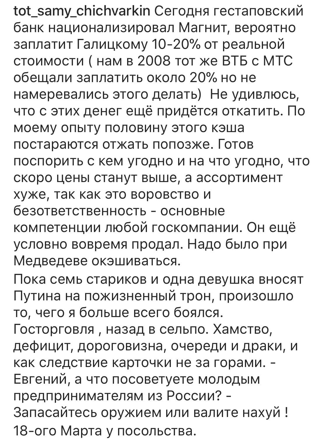= Сообщение: 2499 из 2655 ================================== RU.BLOG.MITHGOL = От : @FidonetRunes 2:50/88 17 Feb 18 06:38:36 Кому : All 17 Feb 18 06:38:36 Тема : Twitter: @FidonetRunes FGHI : area://RU.BLOG.MITHGOL?msgid=2:50/88+5a87a3bd = Кодировка сообщения определена как: CP866 ================================== ============================================================================== Вениамин Кондратьев (@kondratyevvi) 2018-02-16 08:49:42 (UTC)https://twitter.com/kondratyevvi/status/964421516543709185 С Д. Козаком открыли новую зону отдыха на Имеретинской набережной в Сочи. Благоустройство города началось задолго до всероссийского проекта комфортной городской среды и не останавливается до сих пор. [ ](https://pbs.twimg.com/media/DWJQOAoUQAE7oKo.jpg:orig "zoom") [ ](https://pbs.twimg.com/media/DWJQOBJVMAIbBAn.jpg:orig "zoom") ДТП-Бот (@dtp_stat) 2018-02-16 09:00:05 (UTC)https://twitter.com/dtp_stat/status/964424129079164931 15 февраля, четверг, в ДТП погибло 25 человек [ ](https://pbs.twimg.com/media/DWJSodHV4AA2ITQ.jpg:orig "zoom") Pavel Pryanikov (@netovetz) 2018-02-16 09:03:11 (UTC)https://twitter.com/netovetz/status/964424910423539715 Ввести в школьную программу дополнительный предмет - Правила дорожного движения - предложил депутат Государственной Думы, координатор проекта &+AKs-;Единой России&+ALs-; &+AKs-;Безопасные дороги&+ALs-; Сергей Бидонько Русские летописи (@letopisi_rus) 2018-02-16 09:16:44 (UTC)https://twitter.com/letopisi_rus/status/964428320724013057 В летописном телеграме история о том, как в 1072 году у Святослава Ярославича в волосах застрял ноготь святого Глебаhttps://t.me/letopisi_rus/55 Pavel Pryanikov (@netovetz) 2018-02-16 09:25:57 (UTC)https://twitter.com/netovetz/status/964430639352094721 Если бы вы лично сдавали квартиру, то сдавали бы только славянам? Да - 91%, нет - 9%. Слушатели "Говорит Москва" по телефону Крымский мост (@Krymsky_bridge) 2018-02-16 10:33:19 (UTC)https://twitter.com/Krymsky_bridge/status/964447594419314688 Почти тонна блинов в #цифранедели! [ ](https://pbs.twimg.com/media/DWJnwSKX4AAxCP8.jpg:orig "zoom") Крымский мост (@Krymsky_bridge) 2018-02-15 15:43:26 (UTC)https://twitter.com/Krymsky_bridge/status/964163249976631296 В акватории сумеречно. И арочно :) #ждеммост # рымскиймост #стройкавека [ ](https://pbs.twimg.com/media/DWFk1BCWkAAHiTI.jpg:orig "zoom") Русские летописи (@letopisi_rus) 2018-02-16 10:01:28 (UTC)https://twitter.com/letopisi_rus/status/964439577392922624 В год 6860 (1352). Был сильный мор в Пскове. В том же году приехали псковские послы в Новгород, звали владыку Василия к себе, чтобы он приехал их благословить. И владыка послушался их просьб, поехал к ним и, приехав, благословил. И, возвращаясь из Пскова в Новгород, умер. XKCD Comic (@xkcdComic) 2018-02-16 10:03:49 (UTC)https://twitter.com/xkcdComic/status/964440169532219392 Unification https://xkcd.com/1956/ https://m.xkcd.com/1956/ [ ](https://pbs.twimg.com/media/DWJhOPgUQAAXU6D.jpg:orig "zoom") Русские летописи (@letopisi_rus) 2018-02-16 12:53:56 (UTC)https://twitter.com/letopisi_rus/status/964482981367828480 В год 6799 (1291). Грабили [в Новгороде] крамольники Торг, и наутро [новгородцы] сотворили вече и скинули двух крамольников с моста. Русские летописи (@letopisi_rus) 2018-02-16 10:08:37 (UTC)https://twitter.com/letopisi_rus/status/964441377185517569 В год 6879 (1371). В том же году из-за грехов наших сгорел весь город Торжок, и зло на том не закончилось. ForkLog (@ForkLog) 2018-02-16 10:13:52 (UTC)https://twitter.com/ForkLog/status/964442697162481665 ЦБ зафиксировал смещение интереса хакеров к криптовалютамhttps://goo.gl/9N9Y4R #Россия #Центробанк # риптовалюта #хакеры [ ](https://pbs.twimg.com/media/DWJjhSvX4AAfuiG.jpg:orig "zoom") ГКУ ЦОПД (@gkucopd) 2018-02-16 10:29:33 (UTC)https://twitter.com/gkucopd/status/964446643499171841 Лепота какая! На Мастеркова закрыли подземный переход на ремонт и сделали наземник -- коллапса не случилось, трупов нет и люди спокойно переходят улицу! Спасибо @proboknet за материал, надеемся, что переход не станут убирать с открытием подземников: https://proboknet.livejournal.com/861101.html [ ](https://pbs.twimg.com/media/DWJnE5lXcAEyj4b.jpg:orig "zoom") [ ](https://pbs.twimg.com/media/DWJnE5rWkAAy-xJ.jpg:orig "zoom") [ ](https://pbs.twimg.com/media/DWJnE5tXUAEkiCt.jpg:orig "zoom") ForkLog (@ForkLog) 2018-02-15 15:44:43 (UTC)https://twitter.com/ForkLog/status/964163573193814016 Глава ВТБ: жесткое регулирование отсечет от биткоина криминальные день